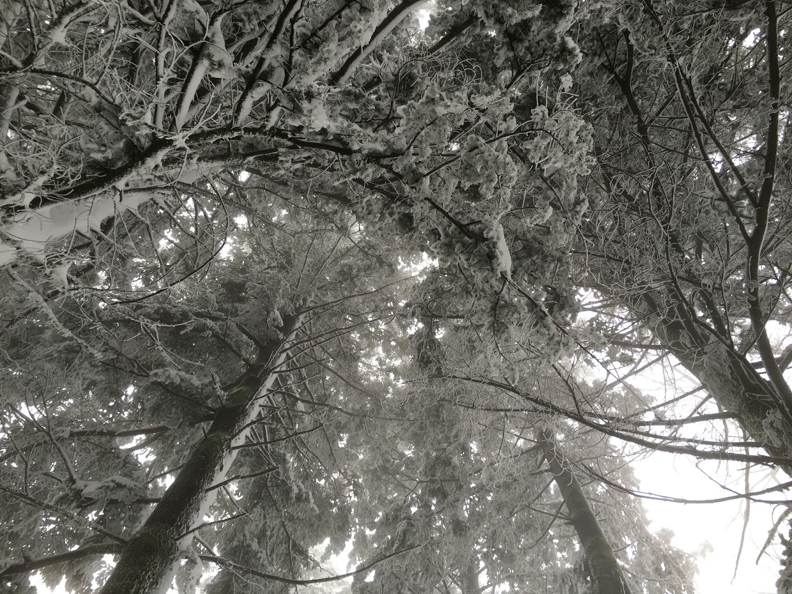 Olhei para o céu e via riscos de flocos na direcção dos meus olhos. À volta a paisagem estava ainda mais desfocada pela cortina dos flocos de neve. Andava por ali sozinho. Não tinha visto ninguém e já não passavam carros há muito tempo. Ao mesmo tempo que achava aquele momento extraordinário pensava no single track (rodados dos carros na neve) que rapidamente iria desaparecer e que, portanto, tornaria a descida muito difícil.