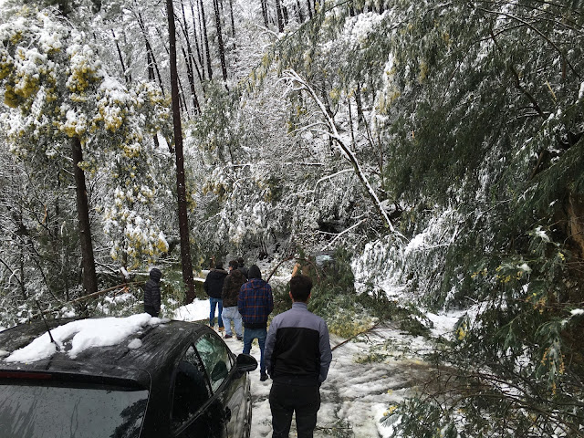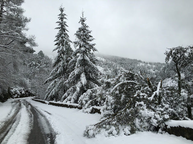 Muitas árvores não aguentaram o peso da neve. Este é um aspecto crítico para as árvores; o peso da neve. As árvores vergam e partem. As mimosas em flor curvavam-se até ao solo.
