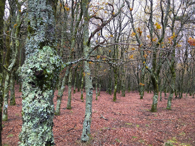Aos 800m tinha já pedalado bem. Tinha suado bastante sob chuva. Por isso, no caminho inclinado para este bosque, o resvalar do pneu numa pedra foi um bom pretexto para parar (é que, às vezes, quando se vai por ali acima a pedalar, em esforço, com chuva e frio, apodera-se de nós uma febre que nos deixa em transe e só pensamos em pedalar, pedalar, não parar, pedalar).