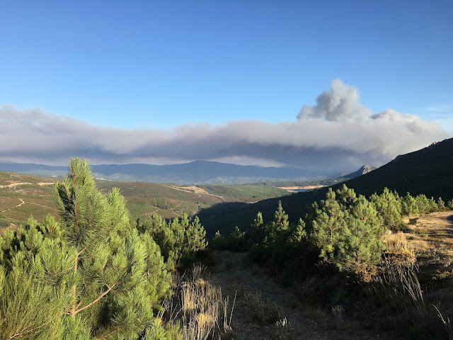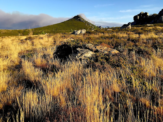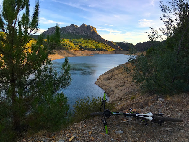 Tinha parado no vale aberto por trás do cabeço da Ortiga, com vistas para o Trevim, para comer o pão com marmelada que trazia no bolso da camisola. Já lá iam uma hora e tal a pedalar serra acima. As torradas com doce de cereja (com caroços, obviamente - gosto de enrolar os caroços na língua) que tinha comido ao pequeno almoço já tinham dado a glucose que tinham para dar. Durante a subida as pedaladas tinham-me levado por caminhos estreitos por entre mimosas, por picadas inclinadas e poeirentas, estradas de terra a meia-encosta e, pouco antes de ali chegar, por uma floresta cheia de sombras. Gosto de parar neste sítio. Vistas largas. Para um, outro e outro lado da serra, sobre o vale e, para cima, a visão do Trevim. Aos 900 e tal metros já se sente o ar mais fino, há um sabor bom, um aroma a montanha.