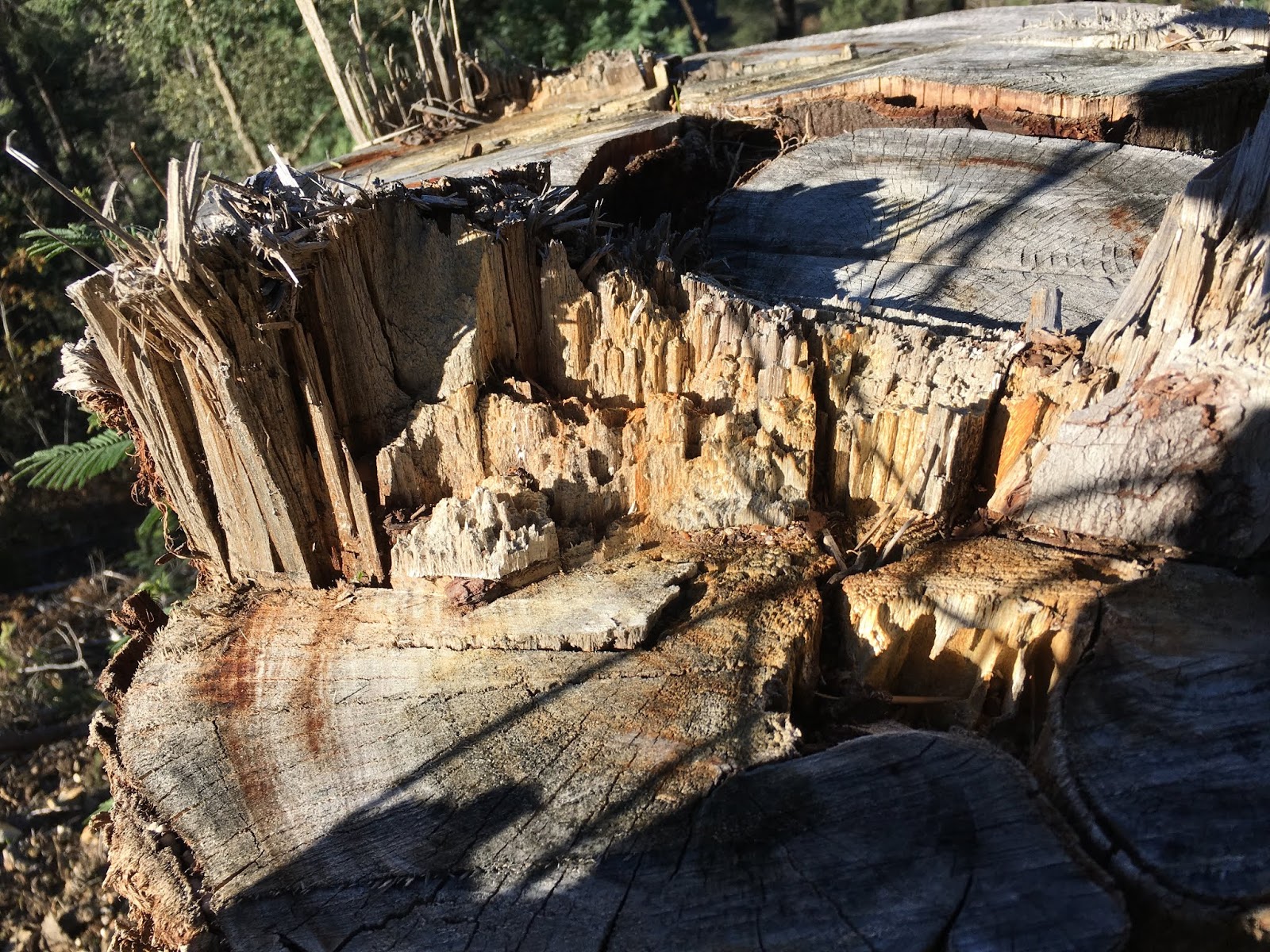 Caibo dentro do tronco. Eu e mais alguns. De pé e em várias camadas. E apesar de aparentemente morto dele rebentaram hastes que se transformaram em troncos grossos e ... cobertos de líquenes.