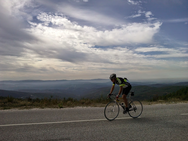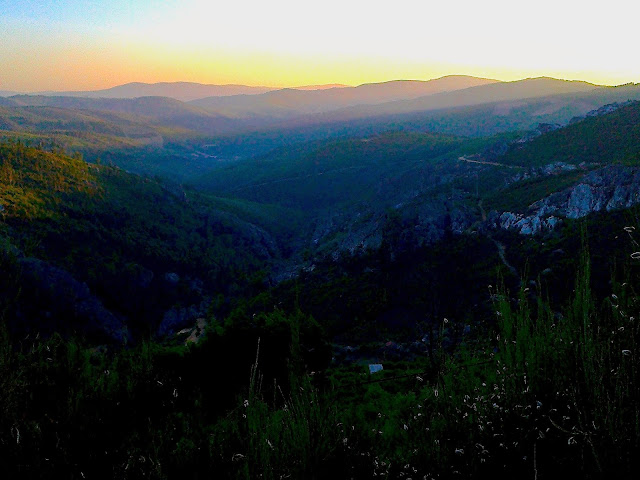 Às vezes sobe-se à pressa. A pressa de chegar lá acima. Não porque há uma meta como, por exemplo, quando se sobe uma grande montanha e se atinge o topo. Pronto chegou-se ao cimo. Atingiu-se o objectivo. Já está. Não, nas serras não é assim. Nas serras vai-se subindo, vão-se descobrindo detalhes durante a subida e, às tantas, chega-se lá acima. E aí nada termina, pelo contrário, começa o resto. Começam os caminhos e as cumeadas das serranias. Gosto das cumeadas com vistas longínquas para um e outro lado. E das ventanias e do Sol e da chuva nas cumeadas. Pedalar acima dos 800-900m em caminhos quase planos é como velejar sobre duas rodas. É a dimensão marítima do BTT (o que é que eu disse? a dimensão marítima do BTT?)