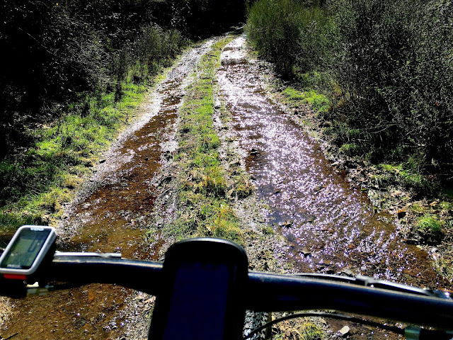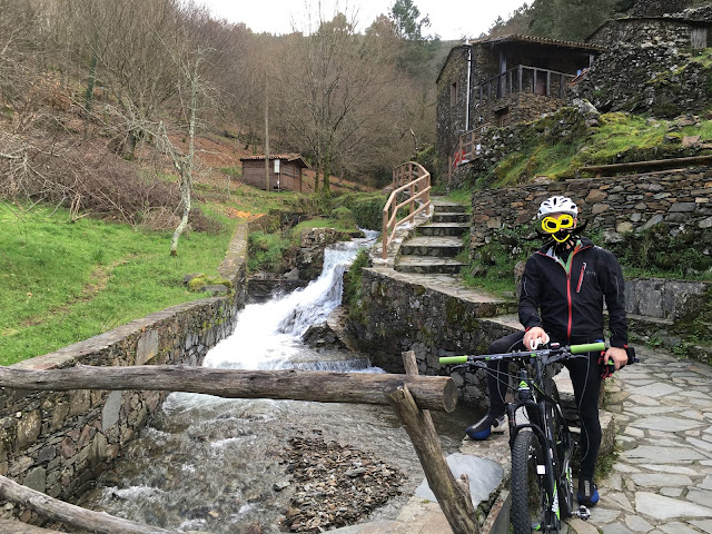 até que, na curva do caminho, após uma descida, travei a fundo. Houston we have a problem. Como é que vou passar para o outro lado? Parecia simples, uma coisa de limpar o cú a meninos. O problema não era o riacho ter uns 4 ou 5 metros de largura ou a altura da água, era a irregularidade do terreno, as pedras escorregadias e as poças fundas camufladas e imprevisíveis. A água a correr com força tinha aberto buracos e caso lá metesse a roda da frente a probabilidade de ir ao charco seria maior que a de encontrar 1 milhão de pessoas na bicha do supermercado à minha frente quando estou cheio de pressa. E descer a serra encharcado provoca não só hipotermia mas também mau aspecto quando se chega a casa. Não conseguia contornar aquilo com a bike às costas.