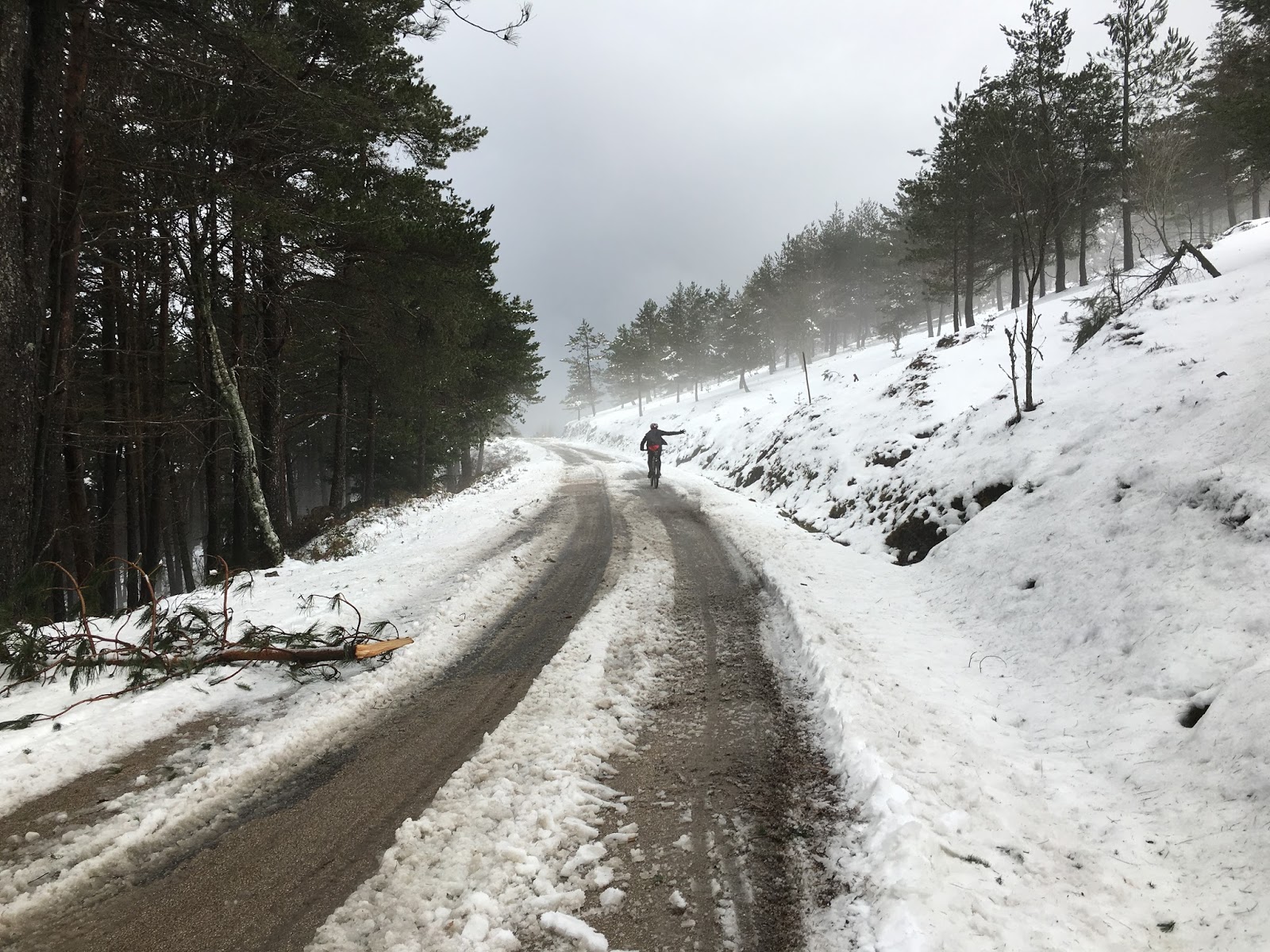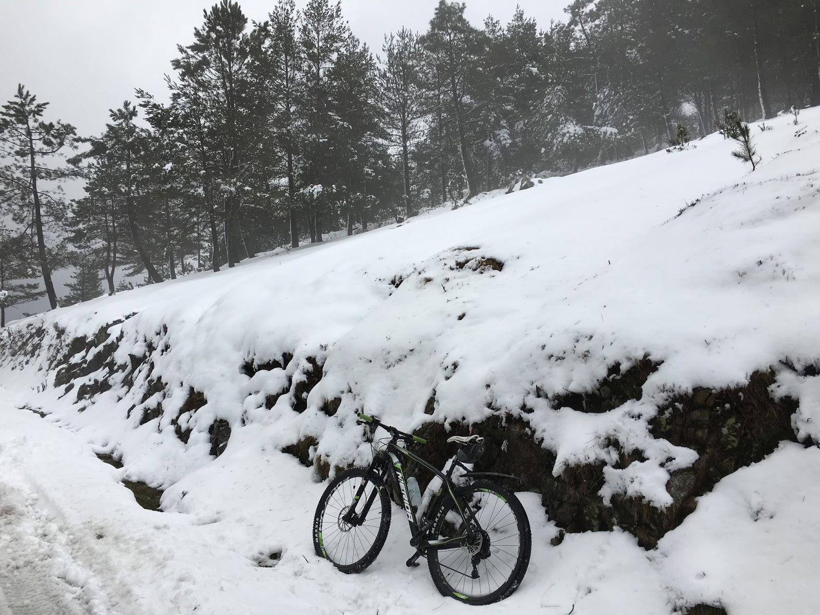 Na chegada ao planalto, onde ontem mal conseguia ver com o nevão que caía, encontrei um companheiro a pedalar. Bom dia. Não o conheço. Pois, eu faço mais downhill mas agora comprei uma bike para fazer cross country. Eu ontem andei por aqui mas estava mau. Eu vim cá com os miúdos, de carro, para eles brincarem na neve. E se tirássemos umas fotografias. OK. Pronto. Então até um dia destes, pode ser que nos encontremos novamente.