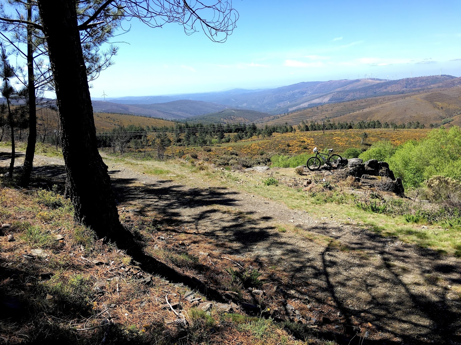 O vento soprava suave, enchendo a paisagem como se fosse o mar ouvido ao longe. Um som longínquo, grave, vibrações que se sentem mais do que se ouvem. Sentem-se com os ossos. O caminho é um daqueles caminhos que vai por ali fora, que serpenteia a meia encosta sobre o vale que se abre a Sul, o vale do Coentral. Pedala-se como se veleja no mar (digo eu, que que nunca velejei), fazendo as rugas da serra como quem sobe e desce as ondas e se se estivesse sempre no mesmo sítio. Do lado de cima do caminho há uma mata de pinheiros pequenos, não necessariamente jovens porque a esta altitude nunca crescem muito e, do lado de baixo, as encostas estão cobertas de arbustos, de carqueja. Para além da carqueja há mais carqueja e é carqueja por aí fora até ao alcance da vista. A rasgar a paisagem.