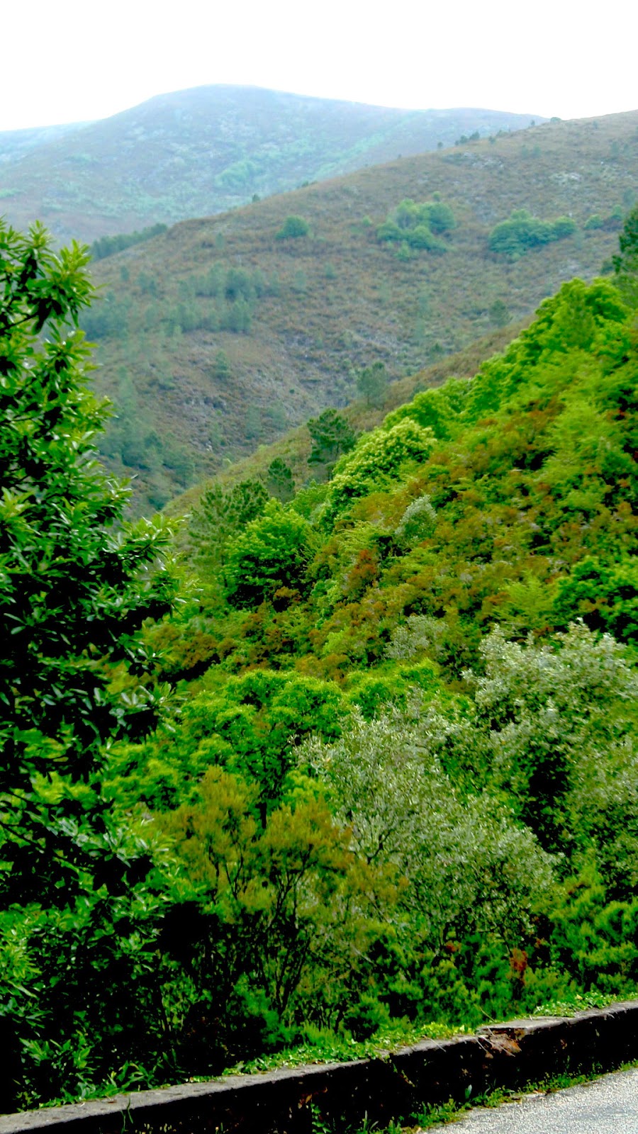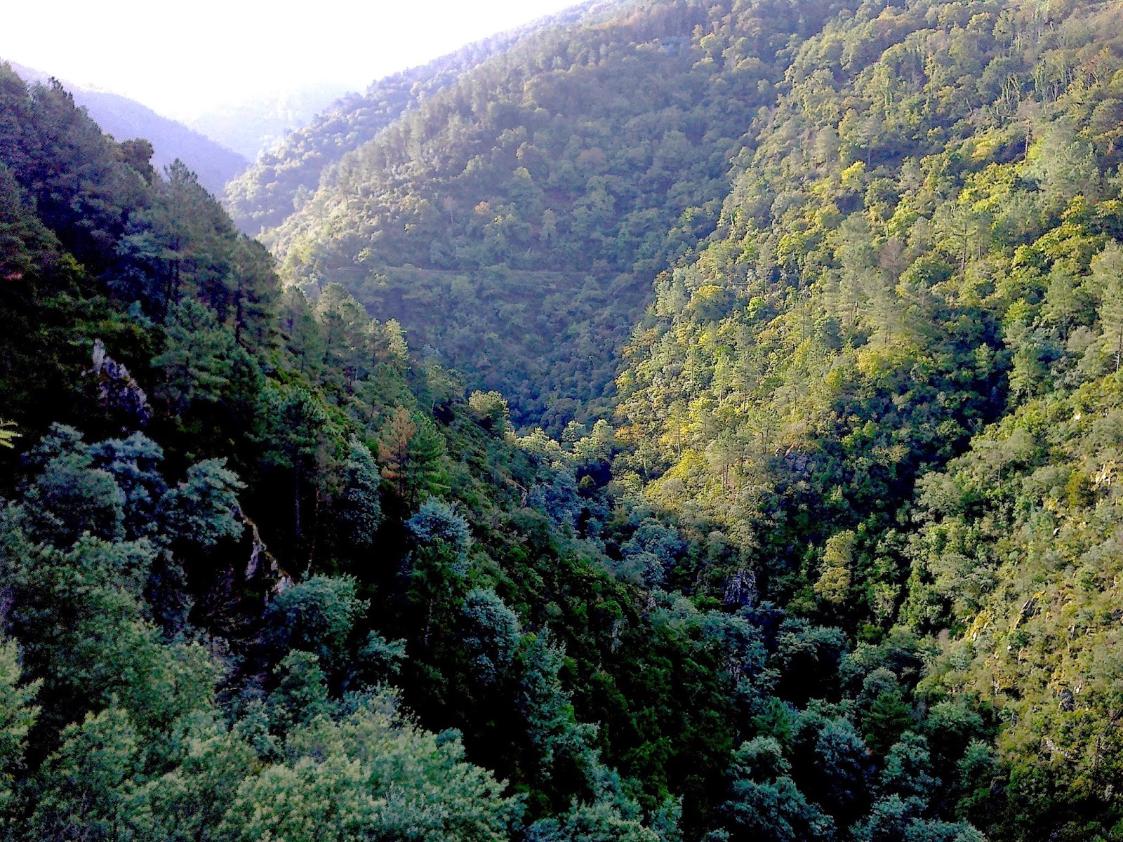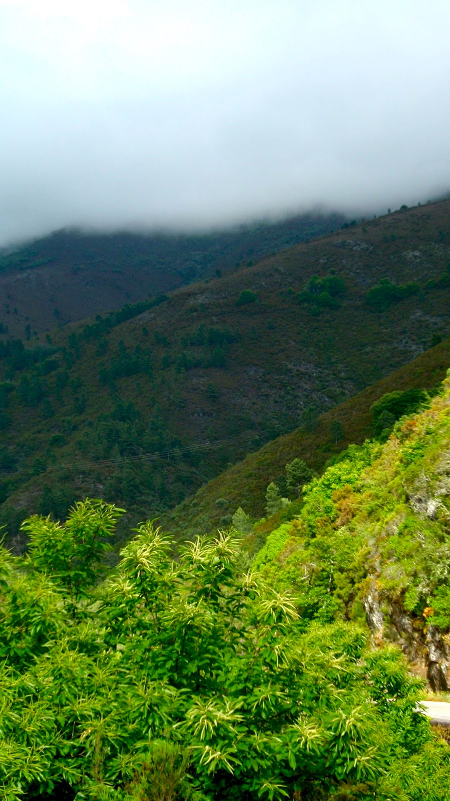 Ouvem-se cascatas lá no fundo no vale. Algumas apenas se vislumbram mas o som da água a correr enche o vale.