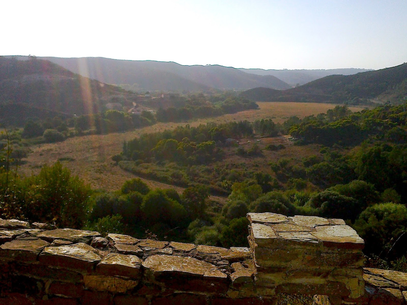 O vale fundo traz a ribeira que lhe dá o nome desde a confluência de outros dois, o da ribeira da Sardeira que vem dos lados do Trevim (monte mais alto da Serra a 1200 m de altitude) e o da ribeira do Candal, até ao Castelo da princesa Peralta (bela história, é só ir à net). A orientação é Este-Oeste. Isto é muito importante porque pela manhã o Sol, ao nascer, espreita pelo vale abaixo e à tardinha recolhe os últimos raios que por ali ficaram. Pela manhã sobe-se com o nascer-do-sol em frente que, à tarde, é substituído pelo por-do-sol na descida, em sentido inverso. Esta circunstância transfigura o vale ao longo do dia e das estações do ano.